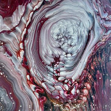 My paintings are done using a variety of methods, although as the name suggests, the acrylic paint is very fluid, due to the addition of mediums. l love using dry pigments, which I then turn into acrylic paint. They are so beautiful that sometimes I just want to look at them and not use them! (but of course I do)